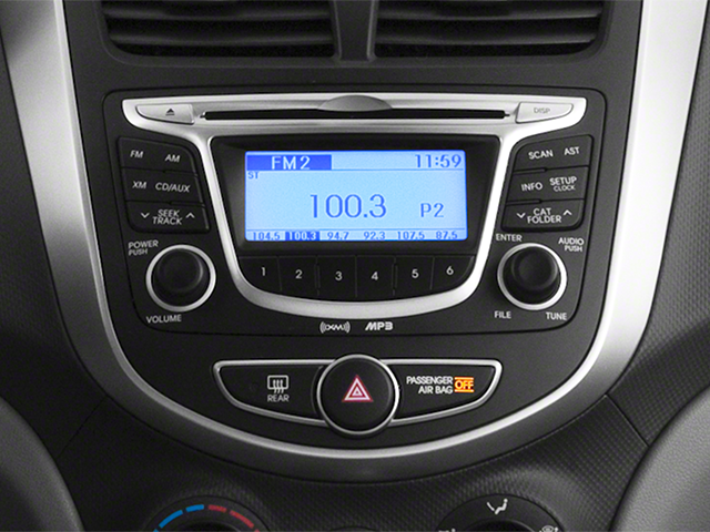 Carriage Traders proudly presents this 2014 Hyundai Accent with Option Group 1, 14 x 5.0J Steel w/Full Wheel Covers Wheels, 6 Speakers, ABS brakes, Air Conditioning, AM/FM radio: SiriusXM, Anti-whiplash front head restraints, Brake assist, Bumpers: body-color, Carpeted Floor Mats, CD player, Cloth Seat Trim, Driver door bin, Driver vanity mirror, Dual front impact airbags, Dual front side impact airbags, Electronic Stability Control, Front anti-roll bar, Front Bucket Seats, Front reading lights, Front wheel independent suspension, Heated door mirrors, Illuminated entry, Low tire pressure warning, Occupant sensing airbag, Overhead airbag, Overhead console, Panic alarm, Passenger door bin, Passenger vanity mirror, Power door mirrors, Power steering, Power windows, Radio: AM/FM/SiriusXM/CD/MP3 Audio System, Rear window defroster, Remote keyless entry, Speed-sensing steering, Split folding rear seat, Tachometer, Tilt steering wheel, Traction control, and Trip computer.