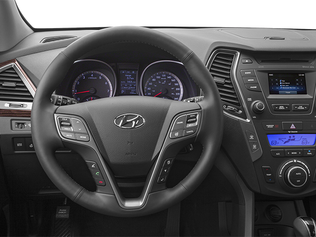 Carriage Traders proudly presents this 2014 Hyundai Santa Fe with Premium Package 02 (Discontinued) (Auto-Dimming Interior Mirror w/Homelink/Compass, Blind Spot Detection System, Dual Zone Automatic Temperature Control, Electroluminescent Gauge Cluster, Exterior Mirrors w/Turn Signal Indicators, Leather Seating Surfaces, Manual Rear Side Window Shades, Power Front Passenger Seat, Power Liftgate, and Proximity Key Entry w/Push Button Start), 18 x 7.5 Aluminum Alloy Wheels, 19 x 7.5 Hyper Silver Alloy Wheels, 3.041 Axle Ratio, 3rd row seats: split-bench, 4-Wheel Disc Brakes, 6 Speakers, ABS brakes, Air Conditioning, Alloy wheels, AM/FM radio: SiriusXM, Brake assist, Bumpers: body-color, Carpeted Floor Mats, CD player, Cloth Seating Surfaces w/Yes Essentials, Delay-off headlights, Driver door bin, Driver vanity mirror, Dual front impact airbags, Dual front side impact airbags, Electronic Stability Control, Emergency communication system: Blue Link, Exterior Parking Camera Rear, First Aid Kit, Four wheel independent suspension, Front anti-roll bar, Front Bucket Seats, Front Center Armrest, Front fog lights, Front reading lights, Fully automatic headlights, Heated door mirrors, Heated Front Bucket Seats, Heated front seats, Illuminated entry, Knee airbag, Low tire pressure warning, Mudguards, Occupant sensing airbag, Outside temperature display, Overhead airbag, Overhead console, Panic alarm, Passenger door bin, Passenger vanity mirror, Power door mirrors, Power driver seat, Power steering, Power windows, Radio: AM/FM/CD/HD Radio/MP3 Audio System, Rear air conditioning, Rear anti-roll bar, Rear seat center armrest, Rear window defroster, Rear window wiper, Remote keyless entry, Roof Rack Cross Bars, Roof rack: rails only, Security system, Speed control, Speed-sensing steering, Split folding rear seat, Spoiler, Steering wheel mounted audio controls, Tachometer, Telescoping steering wheel, Tilt steering wheel, Traction control, Trip computer, and Variably intermittent wipers.