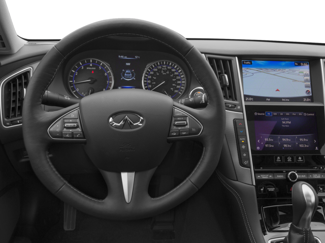 Carriage Traders proudly presents this 2017 INFINITI Q50 with 16 Speakers, 17 x 7.5 Aluminum Alloy Wheels, 4-Wheel Disc Brakes, ABS brakes, Activation Disclaimer, Air Conditioning, Alloy wheels, AM/FM radio: SiriusXM, Anti-whiplash front head restraints, Auto-dimming Rear-View mirror, Automatic temperature control, BOSE Centerpoint Simulated Surround, Brake assist, Bumpers: body-color, CD player, Compass, Delay-off headlights, Driver door bin, Driver vanity mirror, Dual front impact airbags, Dual front side impact airbags, Electronic Stability Control, Four wheel independent suspension, Front anti-roll bar, Front Bucket Seats, Front Center Armrest, Front dual zone A/C, Front fog lights, Front reading lights, Fully automatic headlights, Garage door transmitter: HomeLink, Heated door mirrors, Illuminated entry, INFINITI Studio on Wheels by Bose, Leather Shift Knob, Leather steering wheel, Literature Kit, Low tire pressure warning, Occupant sensing airbag, Outside temperature display, Overhead airbag, Overhead console, Panic alarm, Passenger door bin, Passenger vanity mirror, Power door mirrors, Power driver seat, Power moonroof, Power passenger seat, Power steering, Power windows, Premium Leatherette Seating Surfaces, Premium Paint, Radio data system, Radio: AM/FM/CD w/MP3 Playback Capability, Rain sensing wipers, Rear anti-roll bar, Rear reading lights, Rear seat center armrest, Rear window defroster, Remote keyless entry, Security system, Speed control, Speed-sensing steering, Speed-Sensitive Wipers, Steering wheel mounted audio controls, Tachometer, Telescoping steering wheel, Tilt steering wheel, Traction control, Trip computer, Turn signal indicator mirrors, and Variably intermittent wipers.
