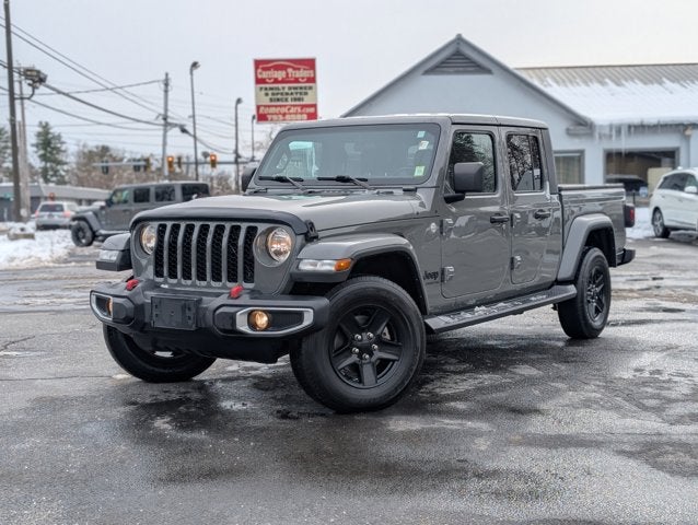 Carriage Traders proudly presents this 2021 Jeep Gladiator with Convenience Group, Popular Equipment Package (Black 3-Piece Hard Top), Quick Order Package 24S Sport S (Automatic Headlamps, Body Color Fender Flares (2-Piece), Daytime Running Lamp System, Deep Tint Sunscreen Windows, Front 1-Touch Down Power Windows, Leather Wrapped Steering Wheel, Molded in Color Bumper w/Accent Color, Normal Duty Plus Suspension, Power Heated Mirrors, Power Tailgate Lock, Remote Keyless Entry, Security Alarm, Speed Sensitive Power Locks, Sport S, and Sun Visors w/Illuminated Vanity Mirrors), Technology Group (7.0 Touch Screen Display, Air Conditioning w/Auto Temperature Control, Apple CarPlay, Cluster 7.0 TFT Color Display, For More Info, Call 800-643-2112, Google Android Auto, GPS Antenna Input, Integrated Center Stack Radio, Integrated Voice Command w/Bluetooth®, Radio: Uconnect 4 w/7 Display, SiriusXM Radio Service, SiriusXM Satellite Radio, and USB Host Flip), Trailer Tow Package (240 Amp Alternator, Class IV Hitch Receiver, Heavy-Duty Engine Cooling, and Trailer Hitch Zoom), 110 mph Vehicle Max Speed Calibration, 3.73 Rear Axle Ratio, 4-Wheel Disc Brakes, 8 Speakers, ABS brakes, Air Conditioning, AM/FM radio, Anti-Lock 4-Wheel Disc Heavy Duty Brakes, Brake assist, Cloth Low-Back Bucket Seats, Compass, Delay-off headlights, Driver door bin, Driver vanity mirror, Dual front impact airbags, Dual front side impact airbags, Electronic Stability Control, Front anti-roll bar, Front Bucket Seats, Front Center Armrest w/Storage, Front fog lights, Front reading lights, Integrated roll-over protection, Low tire pressure warning, Manufacturer's Statement of Origin, MOPAR All-Weather Floor Mats (DISC), Normal Duty Suspension, Occupant sensing airbag, Outside temperature display, ParkView Rear Back-Up Camera, Passenger door bin, Passenger vanity mirror, Power steering, Radio data system, Radio: Uconnect 3 w/5 Display, Rear anti-roll bar, Rear reading lights, Speed control, Split folding rear seat, Steering wheel mounted audio controls, Tachometer, Telescoping steering wheel, Tilt steering wheel, Traction control, Trip computer, Variably intermittent wipers, Wheels: 17 x 7.5 Black Aluminum (DISC), and Wheels: 17 x 7.5 Black Steel Styled.