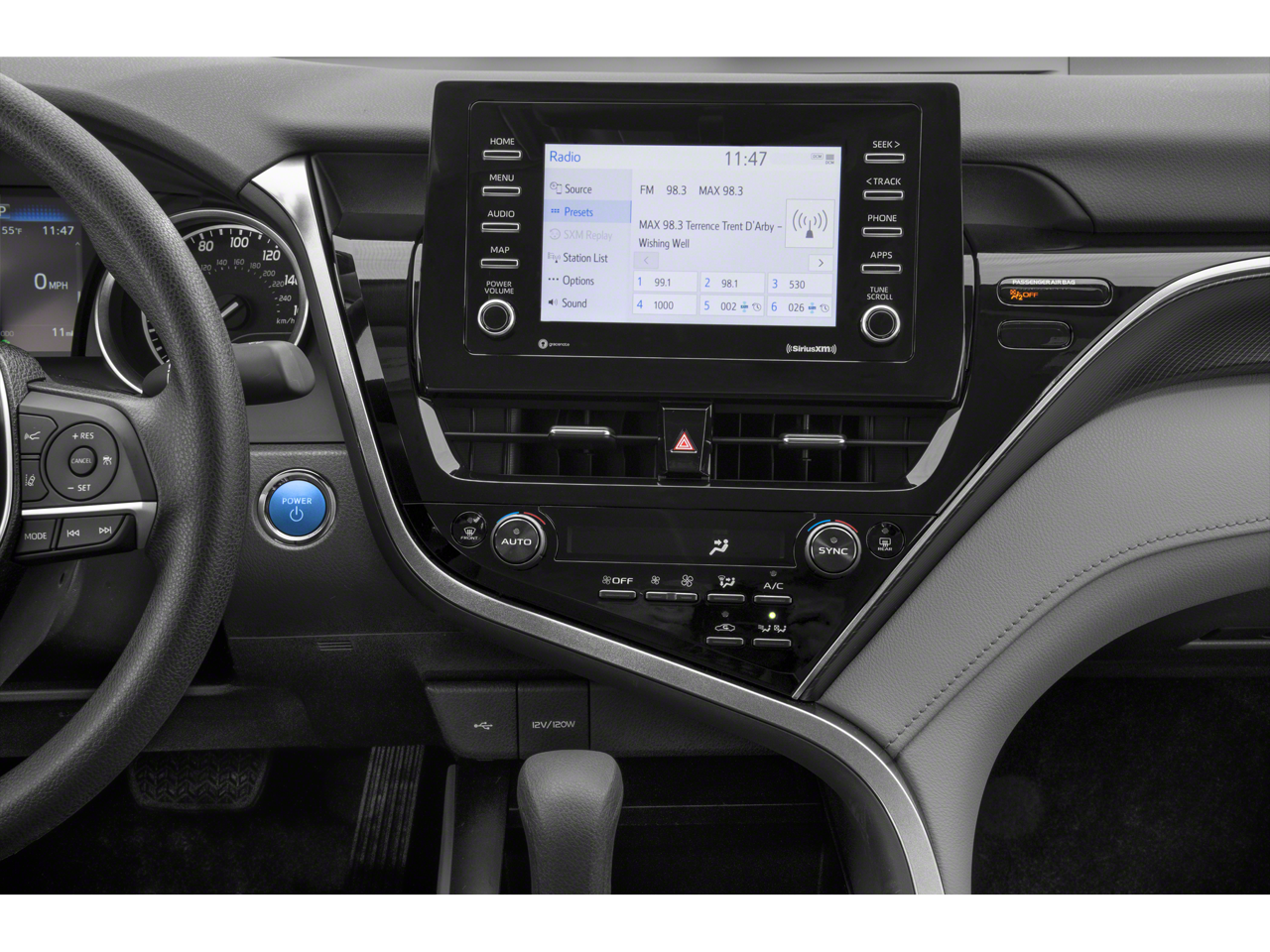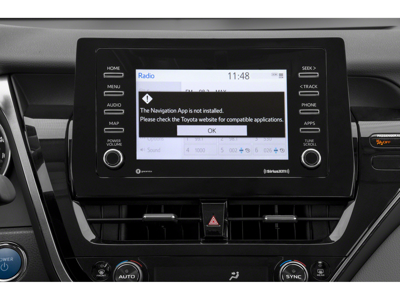 Carriage Traders proudly presents this 2021 Toyota Camry Hybrid with Navigation Upgrade Package (Radio: AM/FM/HD Premium Audio), 4-Wheel Disc Brakes, 6 Speakers, ABS brakes, Air Conditioning, All-Weather Floor Liners & Cargo Tray (TMS), Alloy wheels, AM/FM radio: SiriusXM, Apple CarPlay/Android Auto, Auto High-beam Headlights, Auto-dimming Rear-View mirror, Automatic temperature control, Brake assist, Bumpers: body-color, Delay-off headlights, Driver door bin, Driver vanity mirror, Dual front impact airbags, Dual front side impact airbags, Electronic Stability Control, Emergency communication system: Safety Connect with 1-year trial, Exterior Parking Camera Rear, Four wheel independent suspension, Front anti-roll bar, Front Bucket Seats, Front Center Armrest, Front dual zone A/C, Front reading lights, Fully automatic headlights, Garage door transmitter: HomeLink, Heated door mirrors, Heated front seats, Illuminated entry, Knee airbag, Low tire pressure warning, Multi-Stage Heated Front Bucket Seats, Occupant sensing airbag, Outside temperature display, Overhead airbag, Overhead console, Panic alarm, Passenger door bin, Passenger vanity mirror, Perforated Leather Seat Trim, Power door mirrors, Power driver seat, Power passenger seat, Power steering, Power Tilt/Sliding Moonroof, Power windows, Radio data system, Radio: AM/FM/HD Audio Plus, Rear anti-roll bar, Rear reading lights, Rear seat center armrest, Rear side impact airbag, Rear window defroster, Remote keyless entry, Security system, Speed control, Speed-sensing steering, Split folding rear seat, Steering wheel mounted audio controls, Telescoping steering wheel, Tilt steering wheel, Traction control, Trip computer, Turn signal indicator mirrors, Variably intermittent wipers, and Wheels: 8.0J x 18 Machined Finish Alloy.
