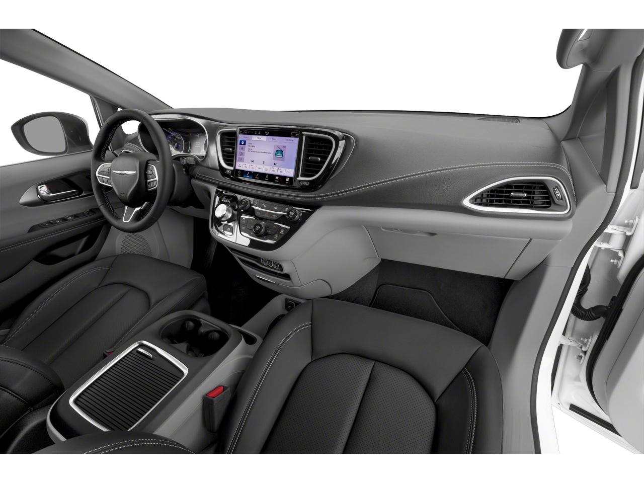 Carriage Traders proudly presents this 2023 Chrysler Pacifica with Quick Order Package 27L, 10.1 Touchscreen Display, 17 x 7.0 Aluminum Wheels, 3.25 Axle Ratio, 3rd row seats: split-bench, 4-Wheel Disc Brakes, 6 Speakers, ABS brakes, Air Conditioning, Alloy wheels, AM/FM radio: SiriusXM, Apple CarPlay, Apple CarPlay/Android Auto, Audio memory, Automatic temperature control, Black Seats, Brake assist, Bumpers: body-color, Caprice Leatherette Bucket Seats, Compass, Delay-off headlights, Disassociated Touchscreen Display, Driver door bin, Driver vanity mirror, Driver's Seat Mounted Armrest, Dual front impact airbags, Dual front side impact airbags, Electronic Stability Control, Four wheel independent suspension, Front anti-roll bar, Front Bucket Seats, Front dual zone A/C, Front Fascia Air Deflectors, Front fog lights, Front reading lights, Fully automatic headlights, Google Android Auto, GPS Antenna Input, Heated door mirrors, Heated front seats, Heated steering wheel, Illuminated entry, Integrated Active Noise Cancellation, Integrated Center Stack Radio, Knee airbag, Low tire pressure warning, Memory seat, Occupant sensing airbag, Outside temperature display, Overhead airbag, Overhead console, Panic alarm, ParkView Rear Back-Up Camera, Passenger door bin, Passenger seat mounted armrest, Passenger vanity mirror, Power door mirrors, Power driver seat, Power Liftgate, Power steering, Power windows, Radio data system, Radio: Uconnect 5 w/10.1 Display, Rain sensing wipers, Rear air conditioning, Rear reading lights, Rear window defroster, Rear window wiper, Reclining 3rd row seat, Remote keyless entry, Security system, Speed control, Split folding rear seat, Spoiler, Steering wheel mounted audio controls, Tachometer, Telescoping steering wheel, Tilt steering wheel, Touring Suspension, Traction control, Trip computer, Turn signal indicator mirrors, USB Host Flip, Variably intermittent wipers, and Voltmeter.