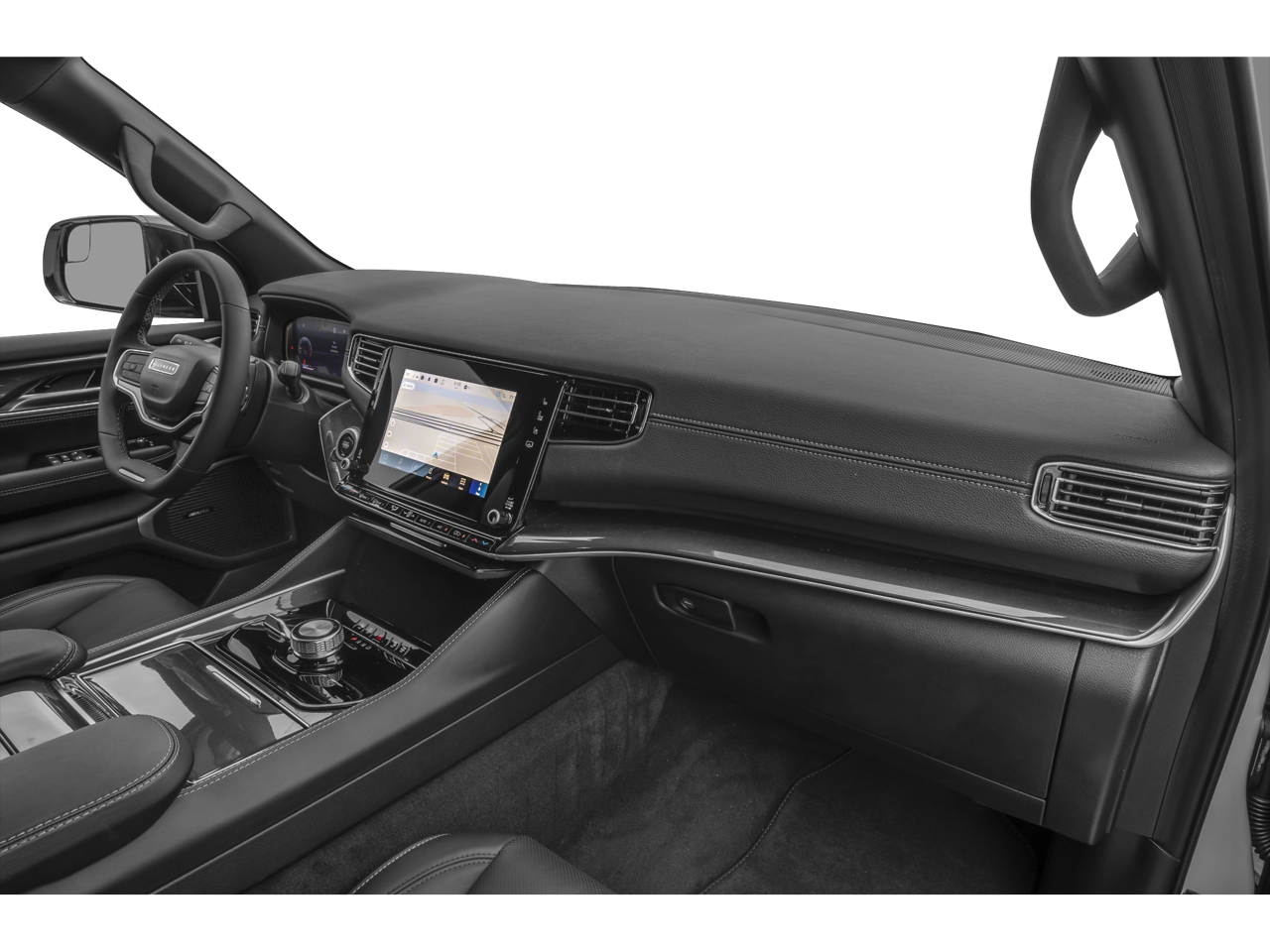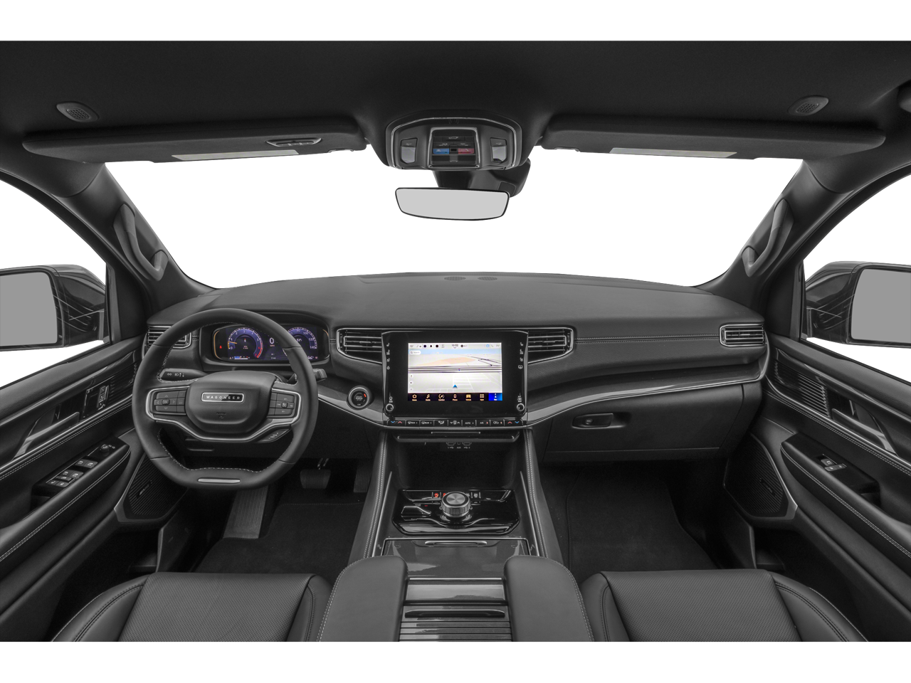 Carriage Traders proudly presents this 2024 Jeep Wagoneer with Quick Order Package 25J, 10 Speakers, 118 MPH Maximum Speed Calibration, 3.55 Rear Axle Ratio, 3rd row seats: bench, 4-Wheel Disc Brakes, ABS brakes, Adjustable pedals, Air Conditioning, Alloy wheels, AM/FM radio: SiriusXM with 360L, Anti-whiplash front head restraints, Apple CarPlay/Android Auto, Audio memory, Auto-dimming door mirrors, Auto-dimming Rear-View mirror, Auto-leveling suspension, Automatic temperature control, Brake assist, Bumpers: body-color, Compass, Delay-off headlights, Driver door bin, Driver vanity mirror, Driver's Seat Mounted Armrest, Dual front impact airbags, Dual front side impact airbags, Electronic Stability Control, Emergency communication system: Wagoneer Connect, Exterior Parking Camera Rear, Four wheel independent suspension, Front anti-roll bar, Front Bucket Seats, Front Center Armrest w/Storage, Front dual zone A/C, Front fog lights, Front reading lights, Fully automatic headlights, Garage door transmitter, Genuine wood console insert, Genuine wood dashboard insert, Genuine wood door panel insert, Heated door mirrors, Heated front seats, Heated rear seats, Heated steering wheel, Illuminated entry, Knee airbag, Leather Trimmed Bucket Seats, Low tire pressure warning, Memory seat, Navigation System, Normal Duty Suspension, Occupant sensing airbag, Outside temperature display, Overhead airbag, Overhead console, Panic alarm, Passenger door bin, Passenger seat mounted armrest, Passenger vanity mirror, Pedal memory, Power adjustable front head restraints, Power door mirrors, Power driver seat, Power Liftgate, Power passenger seat, Power steering, Power windows, Radio data system, Radio: Uconnect 5 Nav w/10.1 Display, Rain sensing wipers, Rear air conditioning, Rear anti-roll bar, Rear dual zone A/C, Rear reading lights, Rear seat center armrest, Rear window defroster, Rear window wiper, Reclining 3rd row seat, Remote keyless entry, Security system, Speed control, Speed-sensing steering, Speed-Sensitive Wipers, Split folding rear seat, Steering wheel memory, Steering wheel mounted audio controls, Tachometer, Telescoping steering wheel, Tilt steering wheel, Traction control, Trip computer, Turn signal indicator mirrors, Variably intermittent wipers, Ventilated front seats, Voltmeter, and Wheels: 20 x 9.0 Premium 2 Aluminum.
